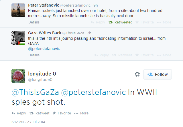 Several journalists from around the world reported seeing rockets fired from civilian areas in Gaza in recent days, and received threatening tweets in return accusing them of “informing” the IDF. Continue reading